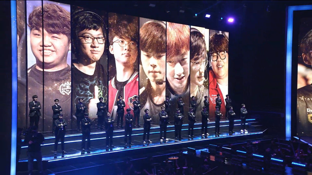 这开幕式上的屏幕上的选手都是Lck著名选手,像鼠王,wolf,deft等等,也象征着过去十年Lck的辉煌,十年六冠军,五连冠!